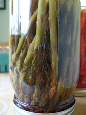 I still have a bunch from last June, but I'll probably make more when asparagus season comes around again. I might do some onions or scallions, too. I do recommend getting some canning tongs before doing this - I don't have any, and it always leads to some near breakings and actual scaldings getting the jars in and out of the boiling water bath. Of course, it may just be that I'm uncoordinated.